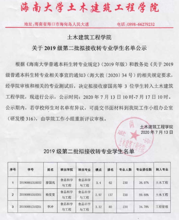 tyc122ccVIP关于2019级第二批拟接收转专业员工名单公示
