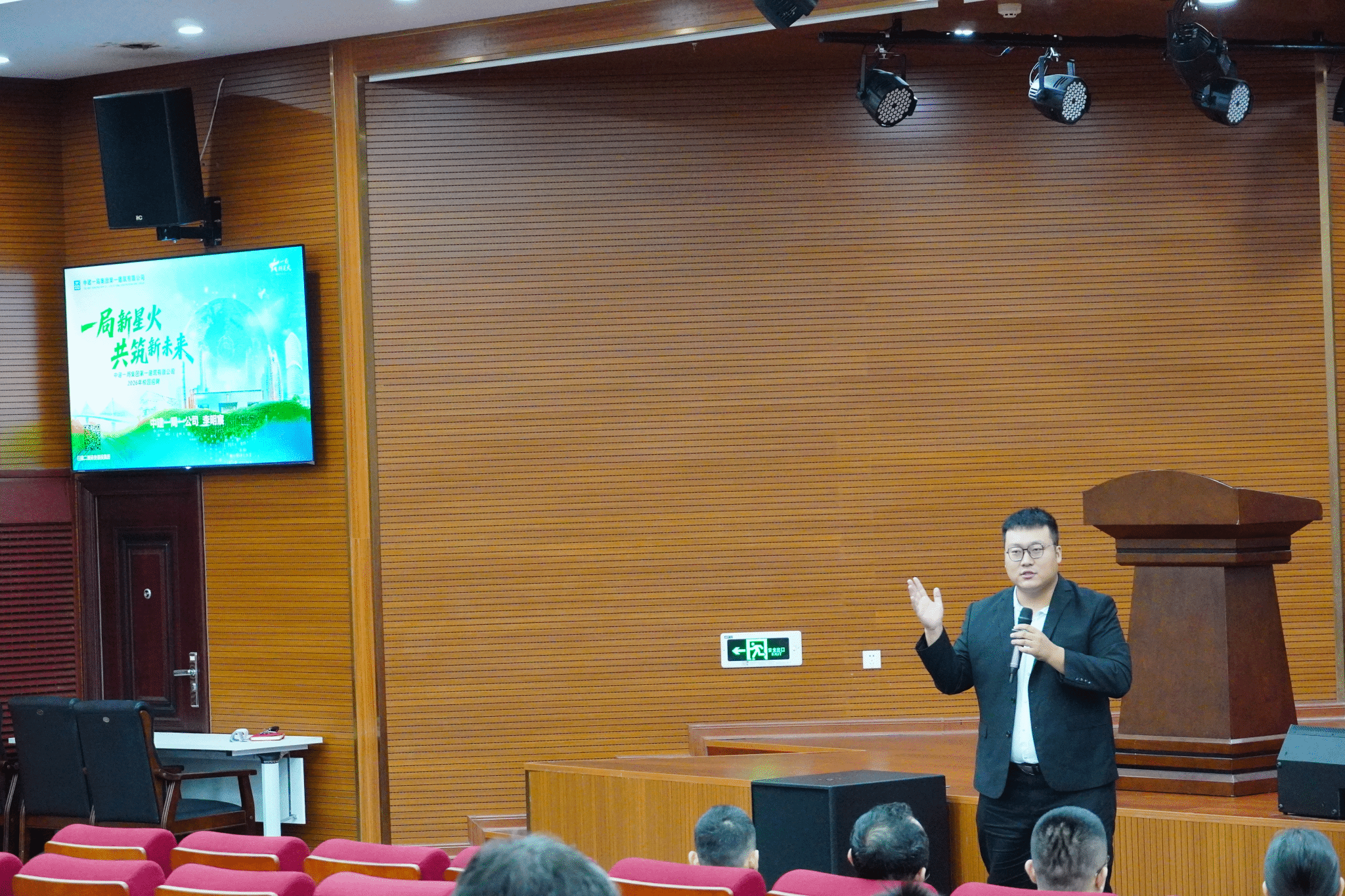 大会伊始,张光宝、陈樱霭、宋朝祥、丁庆磊四位优秀员工依次登场。他们结合自身职业发展历程,从行业趋势、岗位选择、职场适应等方面分享实战经验,为学弟学妹提供了贴合行业实际的就业参考,鼓励毕业生立足专业、脚踏实地,在建筑工程领域深耕成长。
