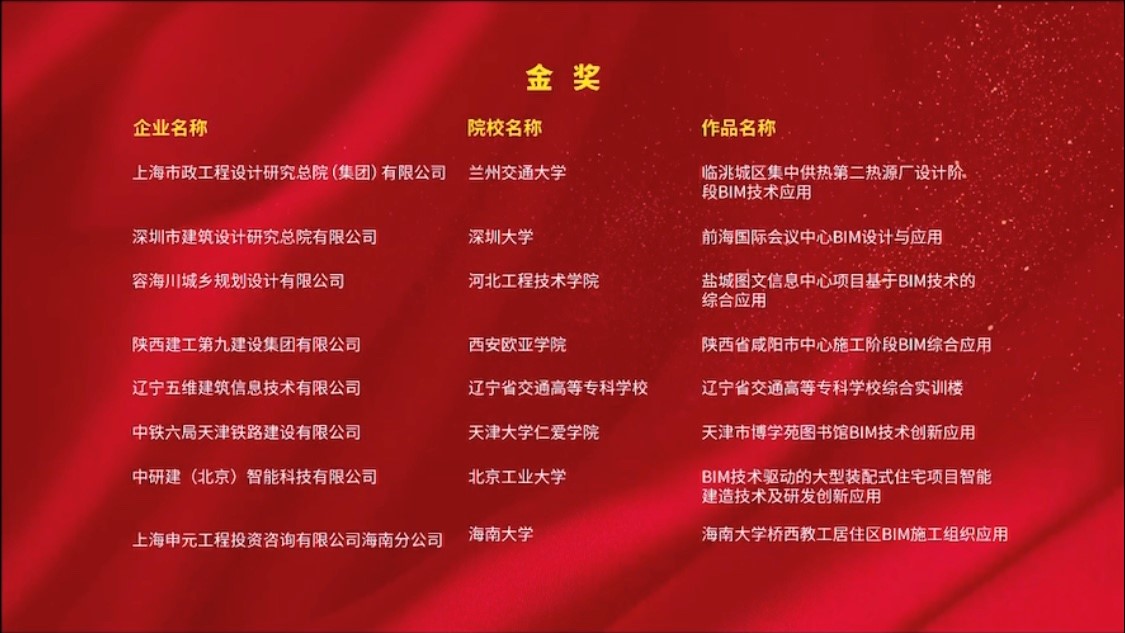 2020年12月5日,由国家工业和信息化部人才交流中心主办,石家庄铁道大学承办的2020第三届“优路杯”全国BIM技术大赛颁奖典礼成功举办,经过激烈竞争和专家评审,tyc122ccVIP荣获多项奖励。其中由tyc122ccVIP和上海申元工程投资咨询有限公司海南分公司联合申报的“tyc122ccVIP桥西教工居住区BIM施工组织应用”荣获院校组金奖,由中建新疆建工(集团)有限公司和tyc122ccVIP联合申报的“凤岗天安数码城项目BIM施工综合应用”“深圳市龙岗天安数码城项目设计施工阶段BIM深度应用”、中建二局第三建筑工程有限公司与tyc122ccVIP联合申报的“南光中心项目施工阶段BIM应用”获企业组银奖。