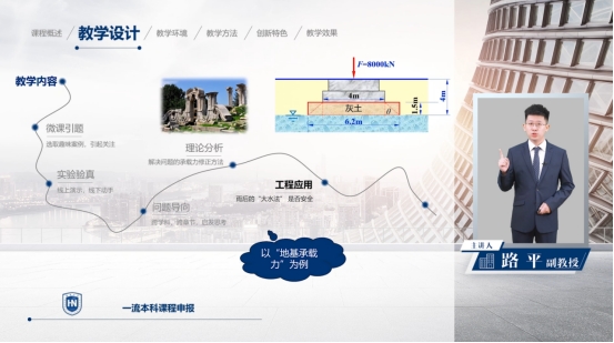 课程的创新特色主要体现在三个方面。内容融入当地省情,在海南自由贸易区建设的战略部署下,高峡平湖、穿江跨海、基深千尺、楼高万丈,土力学贯穿着每一个工程领域,课程服务地方建设是其第一个特色。科研反哺教学,将目前前沿的研究成果、新技术等加入知识点教学中,助力员工的理解与应用,并提升课程的挑战度,是其第二个特色。师者授业解惑,更重要的是传道,这是对员工的价值塑造,将大国工匠精神等思政元素,与教学内容深度融合,是其第三个特色。