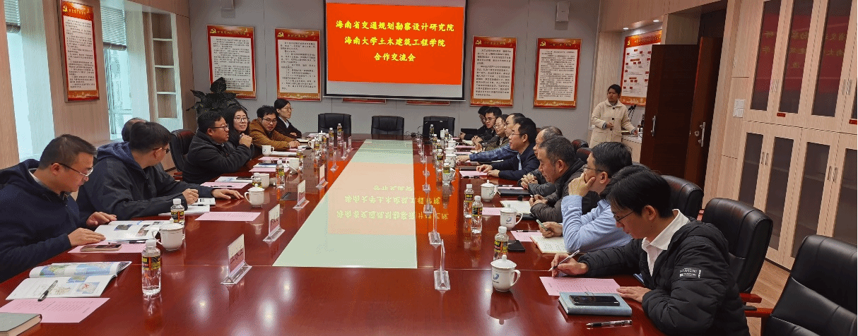 首先周智经理介绍了公司发展历程、一流本科、团队建设和科研特色等情况。王泽仁经理介绍了海南交规院基本情况。双方在道路生态防护、桥梁智能建造和装配式建造、基于BIM的道路数字化方面展开了深入交流。会谈气氛热烈融洽,双方在人才培养、产学研合作等方面进行了探讨,表示后续加强交流沟通,推进合作。