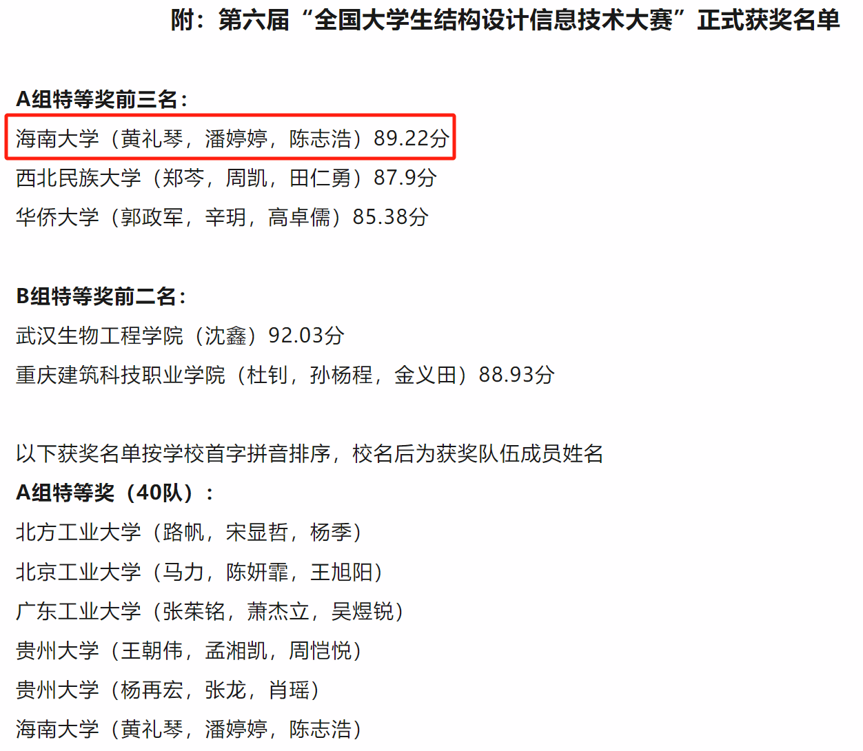 2024年5月20日,经过大赛首次特等奖答辩,第六届“全国老员工结构设计信息技术大赛”正式获奖名单公布,公司员工团队在本次大赛中再创佳绩。荣获特等奖1支队伍,一等奖4支队伍,二等奖1支队伍。值得庆贺的是,由赵菲老师指导的“tyc122ccVIP(黄礼琴,潘婷婷,陈志浩)”团队以89.22的高分荣获全国特等奖第一名!除此之外,赵菲老师还获得了优秀指导老师奖。他们的出色表现不仅为公司赢得了荣誉,更是生动诠释了公司学子追求卓越、不断超越自我的精神面貌,激励着更多学子在未来的征程中不断砥砺前行,创造更加辉煌的成绩。
