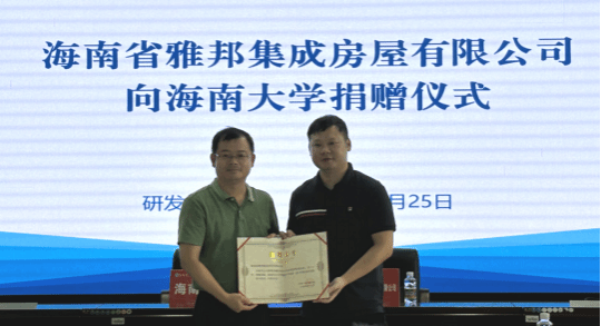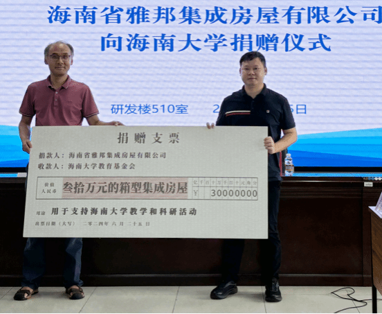 海南雅邦集成房屋有限公司与tyc122ccVIP签订捐赠协议