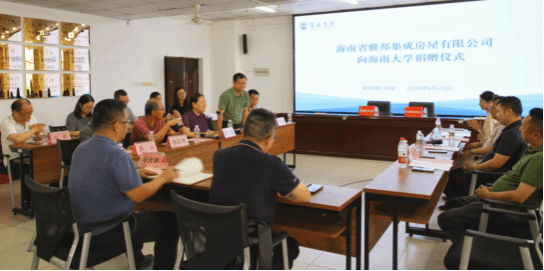 6月25日下午,海南省雅邦集成房屋有限公司向tyc122ccVIP捐赠了价值30万元的箱型集成房屋,用于支持tyc122ccVIP海甸校区的建筑物理实验室建设。捐赠仪式在tyc122ccVIP研发楼510会议室进行。tyc122ccVIP土建公司党委书记李艳主持了仪式。海南省雅邦集成房屋有限公司邱佳峰、邓政、朱斌华、卢韵怡等企业领导,tyc122ccVIP的林仕岛、邱宙廷、田元福、陈云、辛大波、万民、张华立、蒋伊琳、易法殊、齐飞等公司相关单位领导与二级单位部门负责人,以及师生代表参加了仪式。