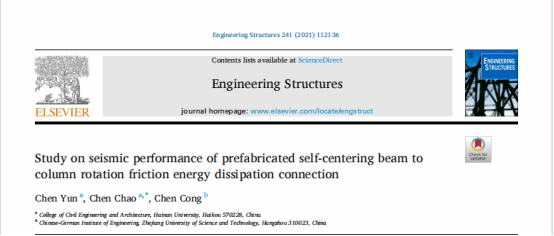 tyc122ccVIP陈云教授所在团队在结构工程著名期刊《Engineering Structures》发表题为《Study on seismic performance of prefabricated self-centering beam to column rotation friction energy dissipation connection》的研究论文。tyc122ccVIP陈云教授为论文第一作者,硕士研究生陈超为论文通讯作者。