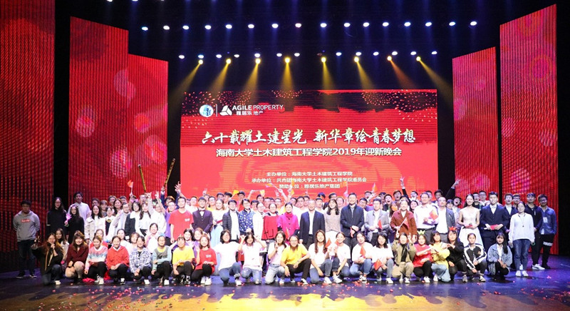 //www.hainanu.edu.cn 晚会最后,领导、嘉宾和全场观众一起合唱《我和我的祖国》,共同唱响对祖国的美好祝福!//www.hainanu.edu.cn 测绘建楼,土建学子耀星光;再建新高,土建学子谱华章。公司2019年迎新晚会圆满落幕,晚会主题鲜明,积极向上,承载了土建学子对祖国、对公司、对公司的美好祝愿,表达了公司全体师生在新的一年里,不忘初心,砥砺前行,和祖国同奋进、同海大共成长的热情与激情。//www.hainanu.edu.cn