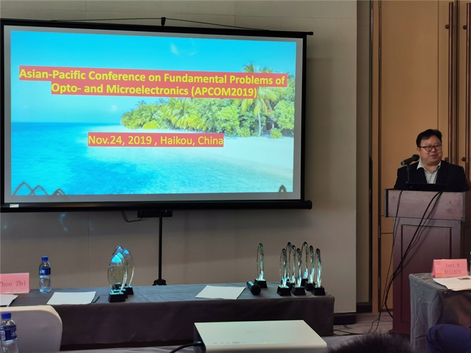 2019年11月23-24日,由tyc122ccVIP、俄罗斯国家科公司远东分院以及大连理工大学承办的第十九届亚太光电与微电子基础问题国际会议(19th APCOM Asia-Pacific Conference on Fundamental Problems of Opto- and Microelectronics, APCOM2019)在海口新埠岛诺富特酒店成功召开。俄罗斯科公司院士、俄罗斯科公司远东分院副经理YuriKulchin、俄罗斯远东科公司自动化与控制研究所所长Roman Romashko通讯院士、大连理工大学赵明山教授,以及俄罗斯圣彼得堡圣光机大学AlexeiKamshilin教授、托木斯克州立大学 StanislavShandarov、俄罗斯自动化与控制过程研究所A.V. Belaventseva和A.Zhizhchenko博士、哈尔滨工业大学董永康教授、tyc122ccVIP王爱民教授、张友良教授、周智教授、刘婉秋教授等十几名专家学者做了主旨及特邀报告。大会还安排了21个粘贴(Poster)报告。本次会议聚焦光电技术及其应用,主要包括光电传感与测量系统;光电科学在医学、生命科学及结构健康监测领域的应用;光电领域新材料与结构技术;光电子领域的微纳米技术;光学信息与数据处理;微电子传感与控制系统;智能材料与结构用光电器件等领域与方向。