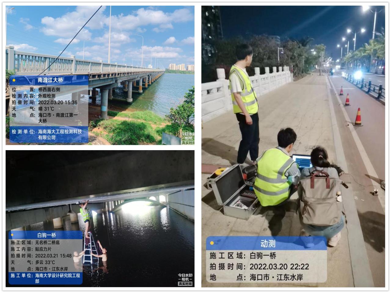 桥梁检测过程中,存在现场条件复杂、作业空间有限、天气多变等诸多不利因素。在海口市桥隧管理有限公司、交警等部门的大力协助下,“海大工程检测”法人代表、tyc122ccVIP土木公司经理周智教授,亲自组织规划,并亲临现场指导工作。“海大工程检测”副总经理陈元旭,tyc122ccVIP韩建刚、刘婉秋教授,高洪波、肖天崟、李兵副教授,乔冠东、王珍珍、蔡文玉、王志佳、段苏苏讲师,带领一众研究生,协同海南海大工程设计研究院有限公司全体员工,按周经理制定的计划,积极协调各方,有条不紊地进行着检测工作。最终,在周智经理的卓越领导下,公司上下齐心,团结一致,众志成城,日夜奋战,顺利完成了此次艰巨的任务。
