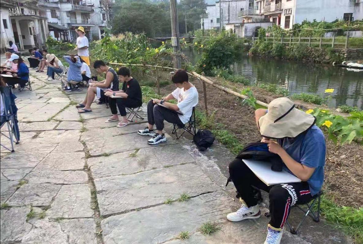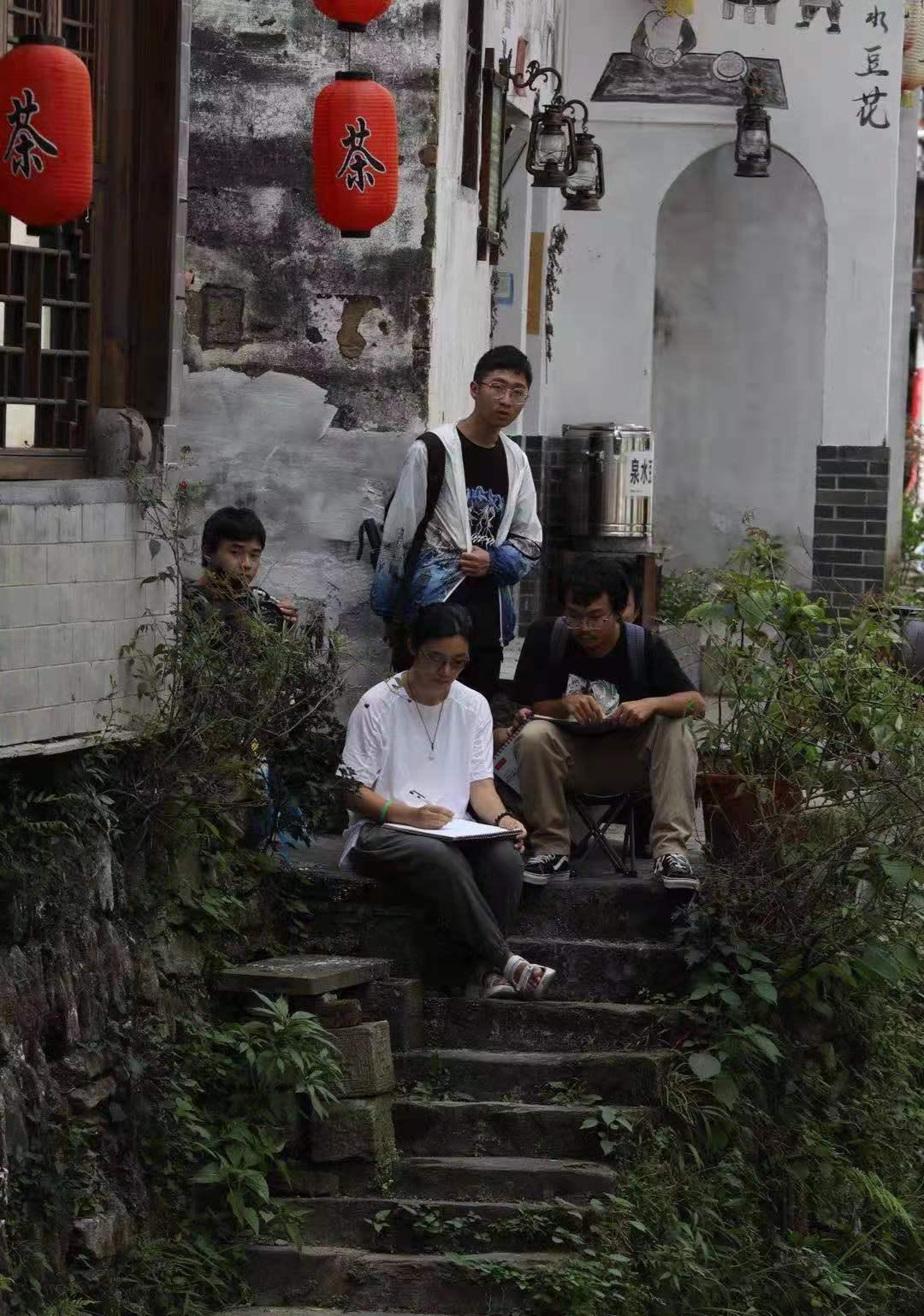 晓起村的清晨,在流水潺潺的小河边描绘古建筑,这段师生共同游学进步的时光将成为员工时代珍贵美好的回忆。