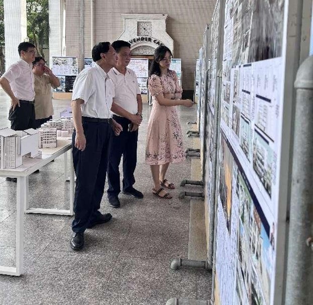 13日上午,公司党委书记符宣国、副董事长叶光亮、胡新文等公司领导在tyc122ccVIP经理周智及建筑系相关教师的陪同下来到毕业设计展的现场进行参观,员工代表向校领导进行作品展示和方案介绍,符书记与该名同学进行了亲切交流。校领导参观后对建筑系毕业设计展给予充分肯定,并对建筑系教师的相关工作进行询问交流。校领导表示此次毕业展可以延长展示时间,更好地促进校园内的学科交流,让更多的同学和教师参与。