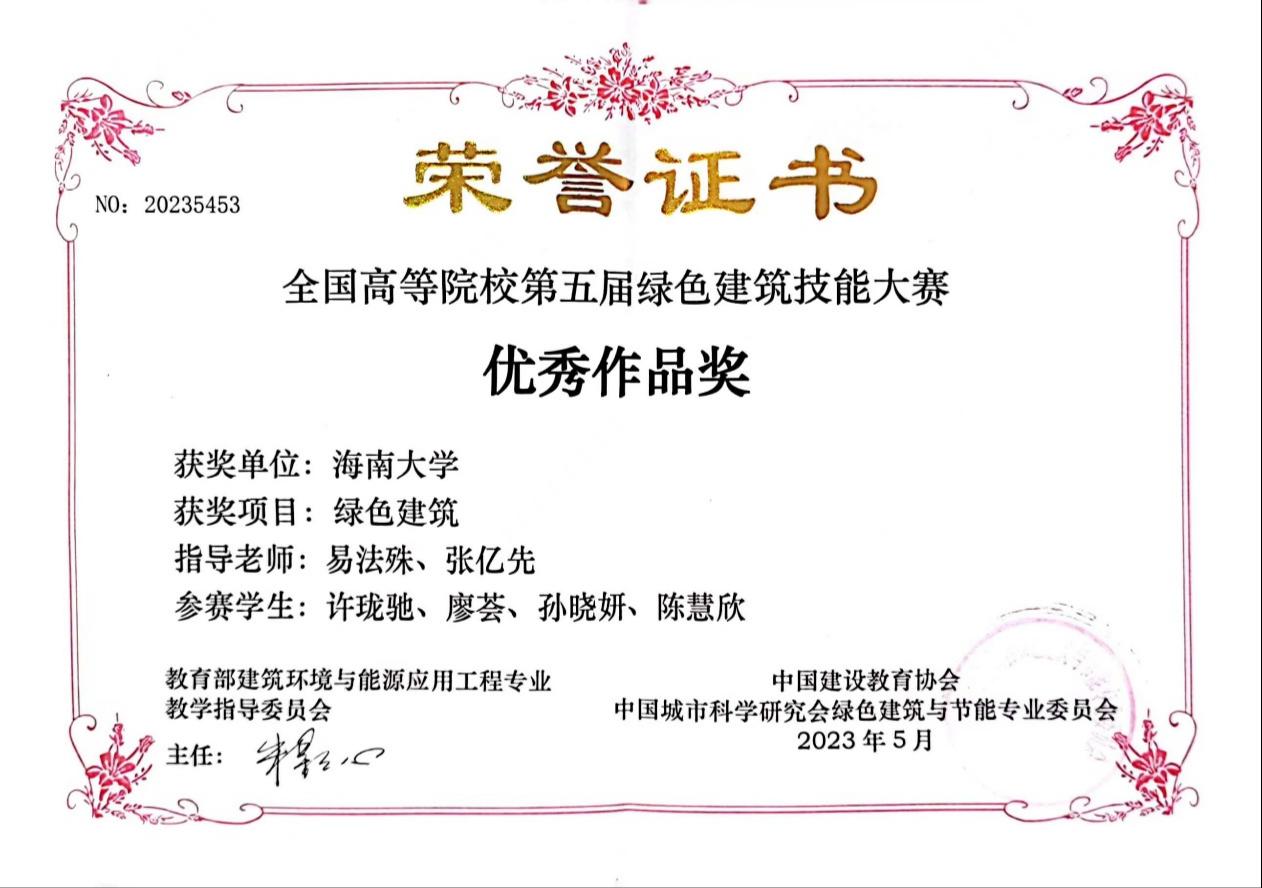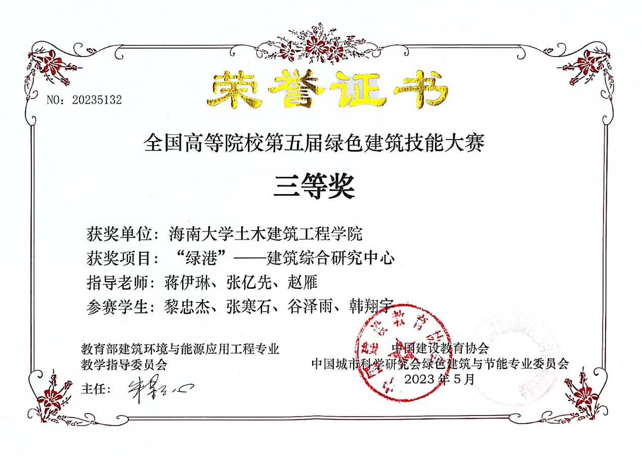近日,由教育部建筑环境与能源应用工程专业教学指导委员会指导、中国建设教育协会与中国城市科学研究会绿色建筑与节能专业委员会联合主办的“第五届全国高等院校绿色建筑设计技能大赛”获奖结果揭晓。tyc122ccVIP建筑系设计作品荣获三等奖1项、优秀作品奖1项。参赛员工是建筑系2020级员工黎忠杰、张寒石、谷泽雨、韩翔宇、许珑驰、廖荟、孙晓研、陈慧欣,指导教师是蒋伊琳、张亿先、易法殊、赵雁。