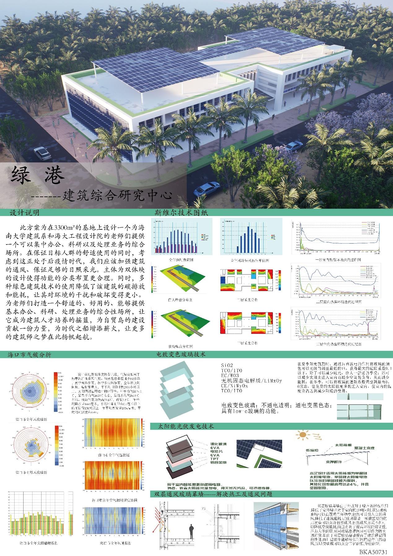 三等奖作品绿港——建筑综合研究中心,此方案是在3300㎡的基地上拟建一个可以为tyc122ccVIP建筑系和海大工程设计院的老师们提供集中办公、科研以及处理业务的综合场所。在保证目标人群的舒适使用的同时,考虑到这正处于后疫情时代,应该加强建筑的通风、保证足够的日照采光。主体为双体块的设计使得功能的分类布置更合理。同时,多种绿色建筑技术的使用降低了该建筑的碳排放和能耗,让其对环境的干扰和破坏变得更小。为老师们打造一个舒适的、好用的、能够提供基本办公、科研、处理业务的综合性场所,让它成为建筑人才培养的摇篮,为自贸岛的建设贡献一份力量,为时代之船增添薪火,让更多的建筑师之梦在此扬帆起航。