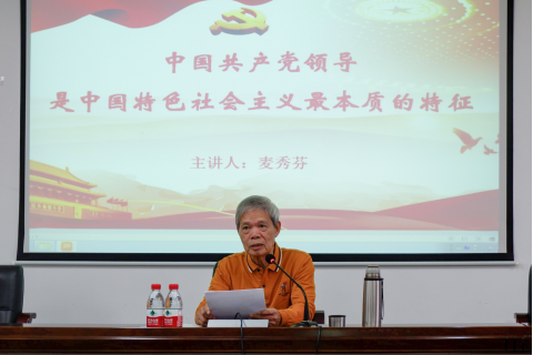 培训伊始,麦书记带领全体学员合唱《没有共产党就没有新中国》。接着,麦书记向大家阐述了习近平新时代中国特色社会主义思想的核心要义,并结合自身的经历和感受与国内外特别是疫情当下的不同形势,分析中国特色社会主义制度的巨大优势,并勉励同学们要积极学习、广泛阅读、增长见识。此后,麦书记带领学员深入理解学习习近平新时代中国特色社会主义思想的深刻内涵,深刻认识坚持和加强中国共产党领导的历史逻辑,论述中国共产党领导下中国的发展与成就。最后,麦书记进行总结,培训在一片掌声中结束。