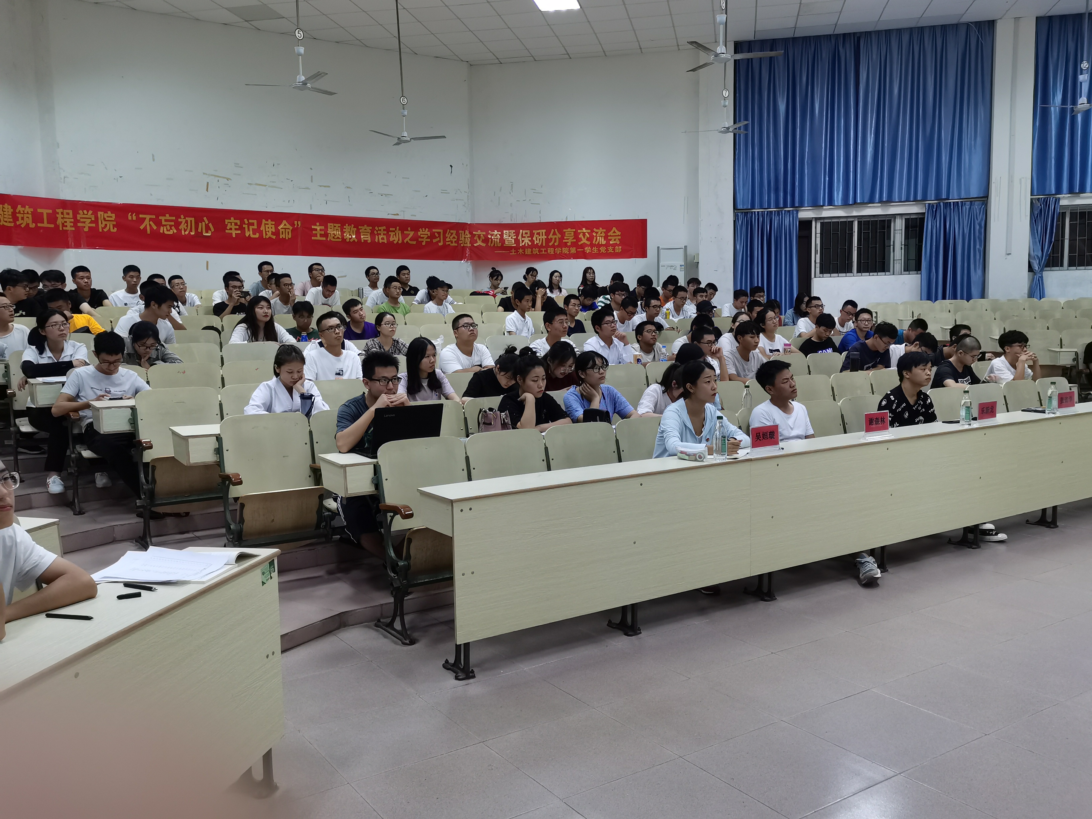 2019年10月20日晚上,公司第一员工党支部在2教108教室召开“不忘初心、牢记使命”主题教育之学习经验交流会暨保研分享会。公司土木工程专业入党积极分子、发展对象、员工党员参会,会议由支部纪检委员施杰同志主持。